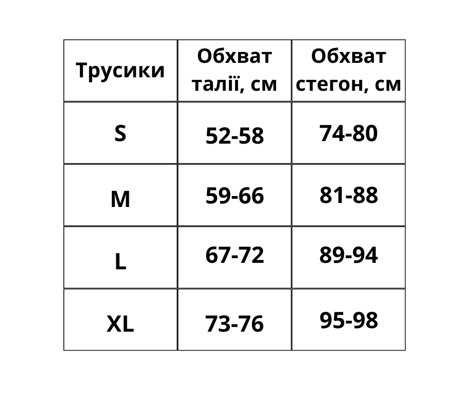 Чарівні трусики Push-Up — ідеальні форми без зусиль. Мрієте про підтягнуті сідниці та жіночні вигини? Трусики з ефектом push-up допоможуть створити бажану форму миттєво —без спортзалу, без дискомфорту, без компромісів. Вони настільки зручні, що ви зможете носити їх під час тренувань, на роботі, на вечірках чи побаченнях, щодня, як звичайну білизну. Переваги: • не видно під одягом • Дихаючий матеріал з м'якими манжетами – ніжно прилягає до тіла • Формовані сідниці з природними вигинами – виглядають натурально • Наповнювач впаяний – не зсувається навіть під час активного руху • Гіпоалергенний ортопедичний матеріал (пінополіуретан) – не викликає подразнень і не втрачає форму з часом ✨ Ваш секрет ідеальних форм залишиться лише з вами. Почніть день з упевненістю — обирайте білизну, яка справді працює на ваш образ!